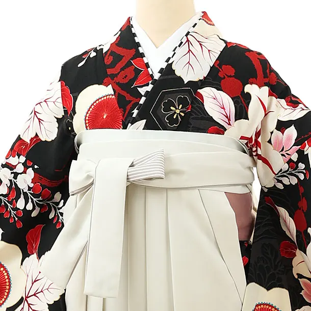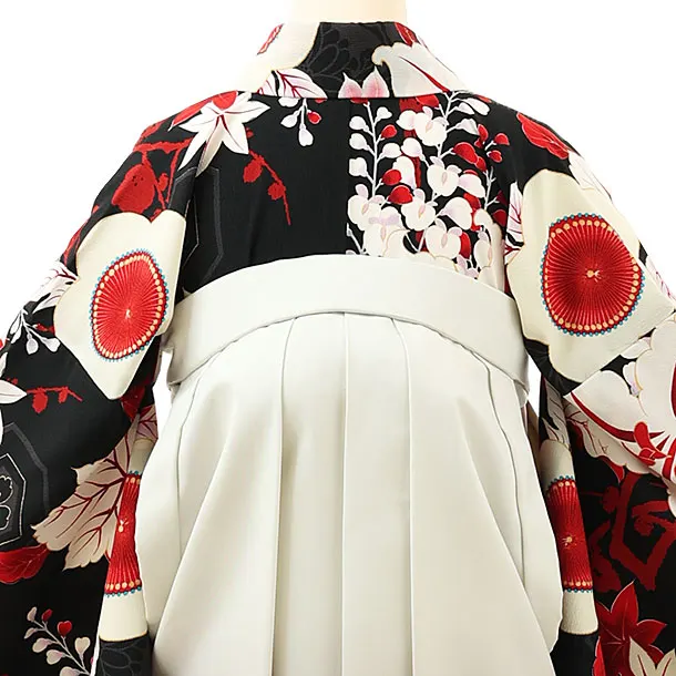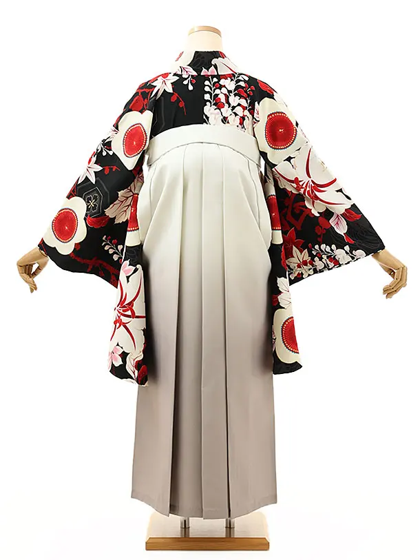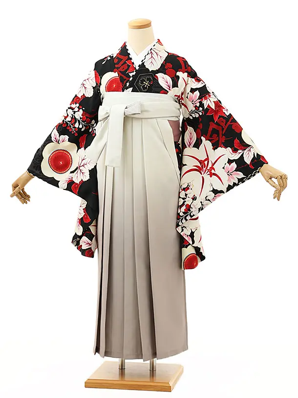 卒業式袴レンタル1579黒地百合梅x薄グレージュぼかし