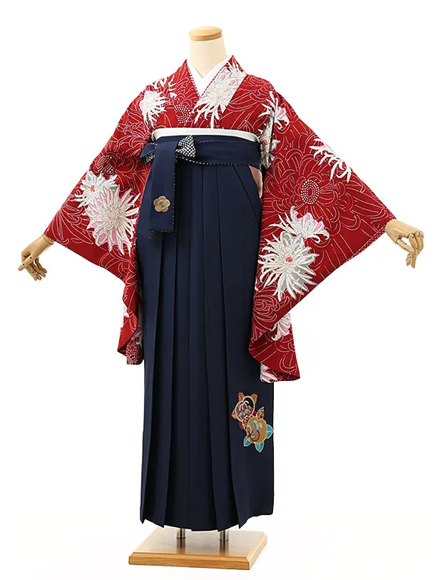 卒業式袴レンタル1582エンジ色乱菊x紺