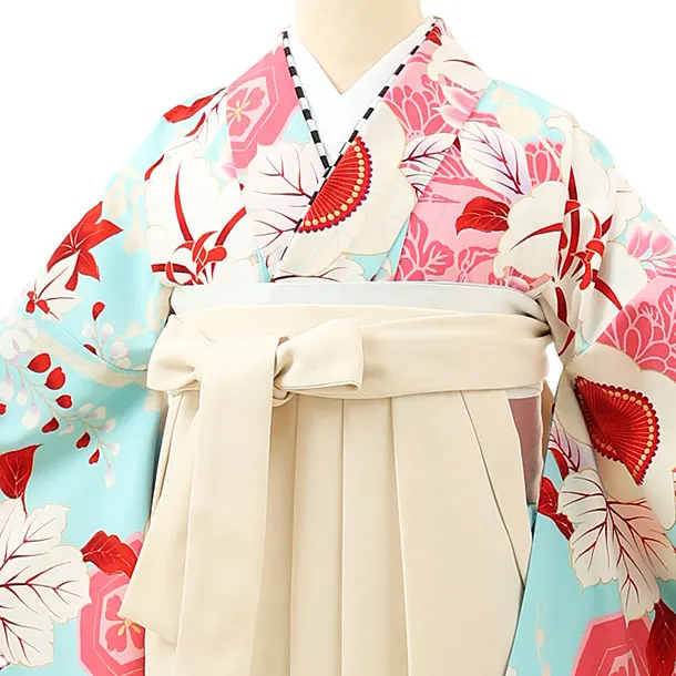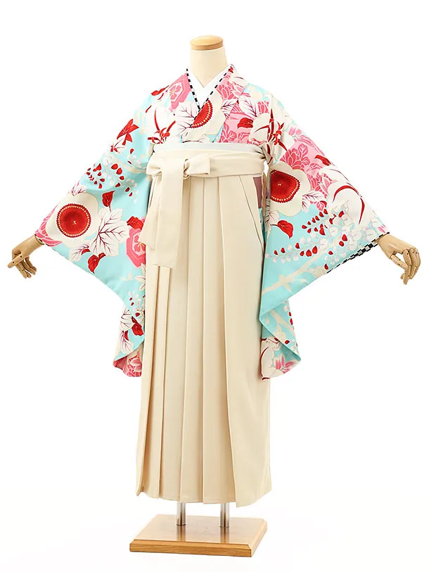 卒業式袴レンタル1584水色百合梅xアイボリー