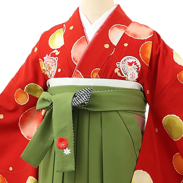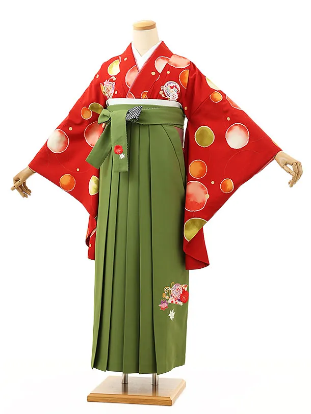 卒業式袴レンタル1594赤ドット刺繍まりxグリーン