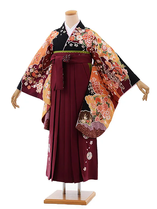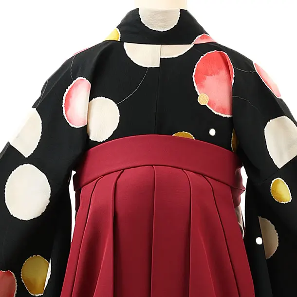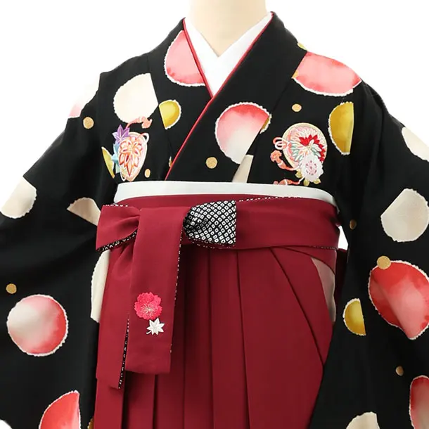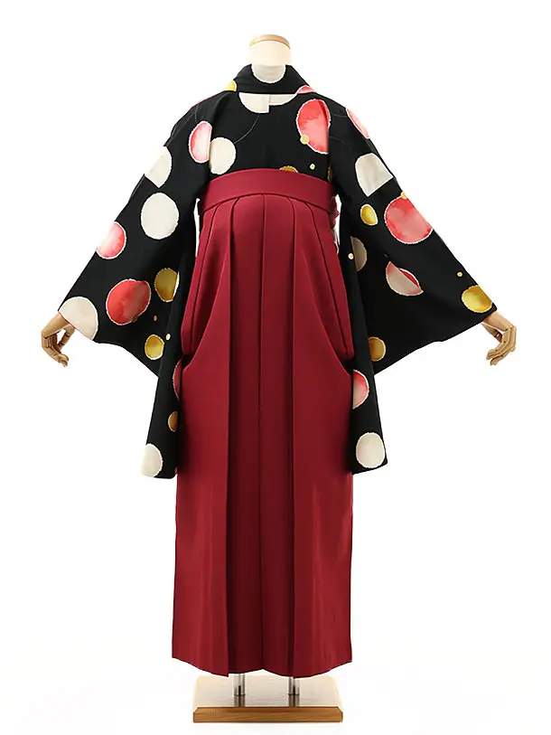 卒業式袴レンタル1596黒ドット刺繍まりxエンジ