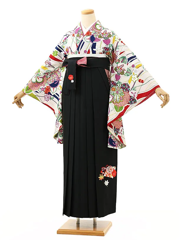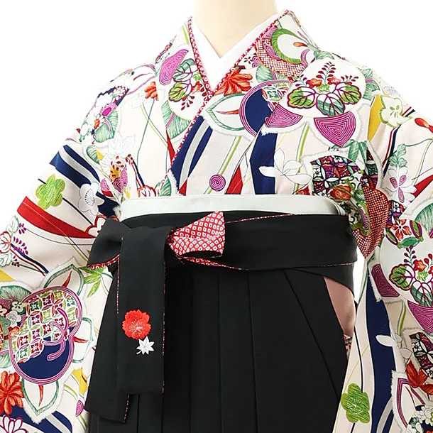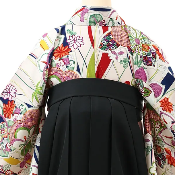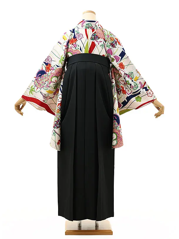卒業式袴レンタル1600アイボリー橘梅x黒