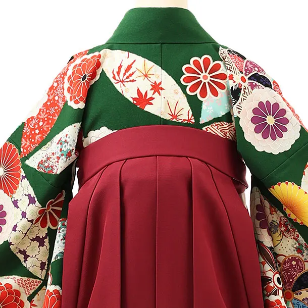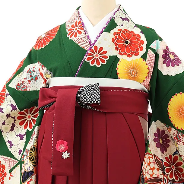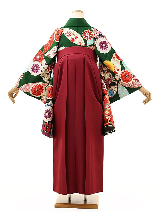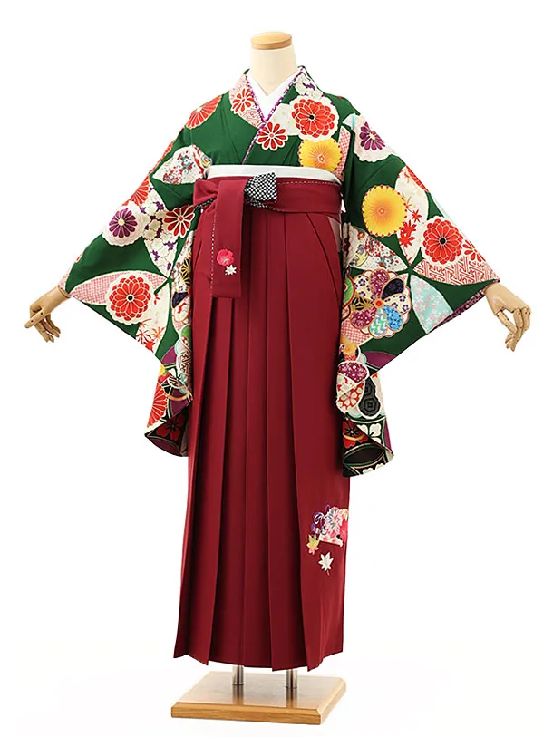 卒業式袴レンタル1602グリーン貝桶菊xエンジ