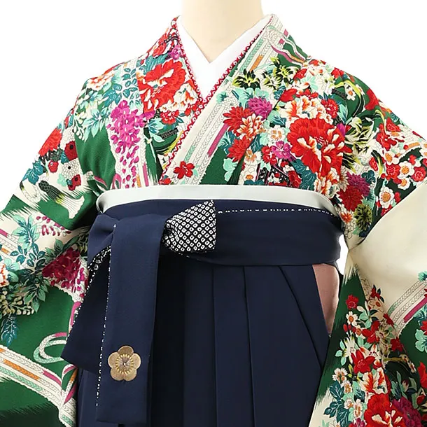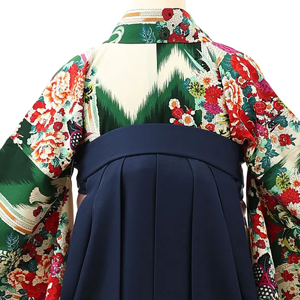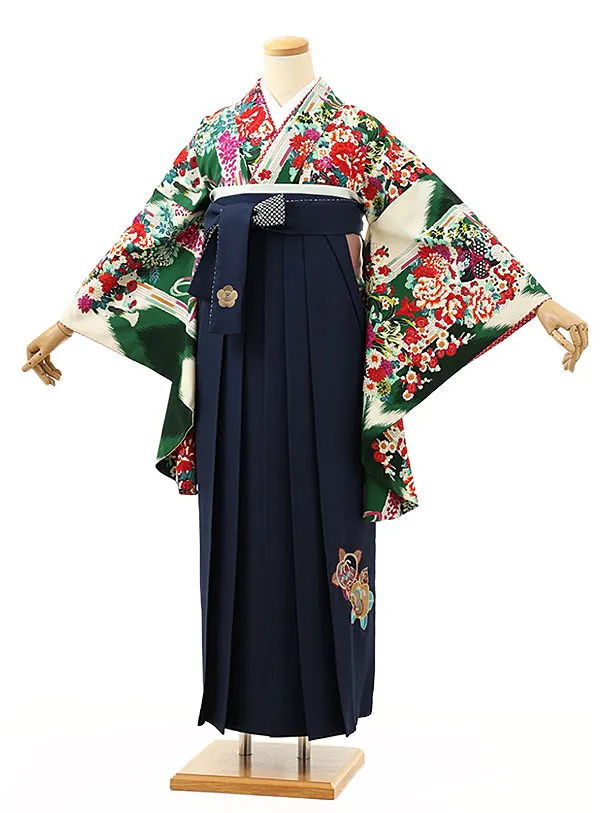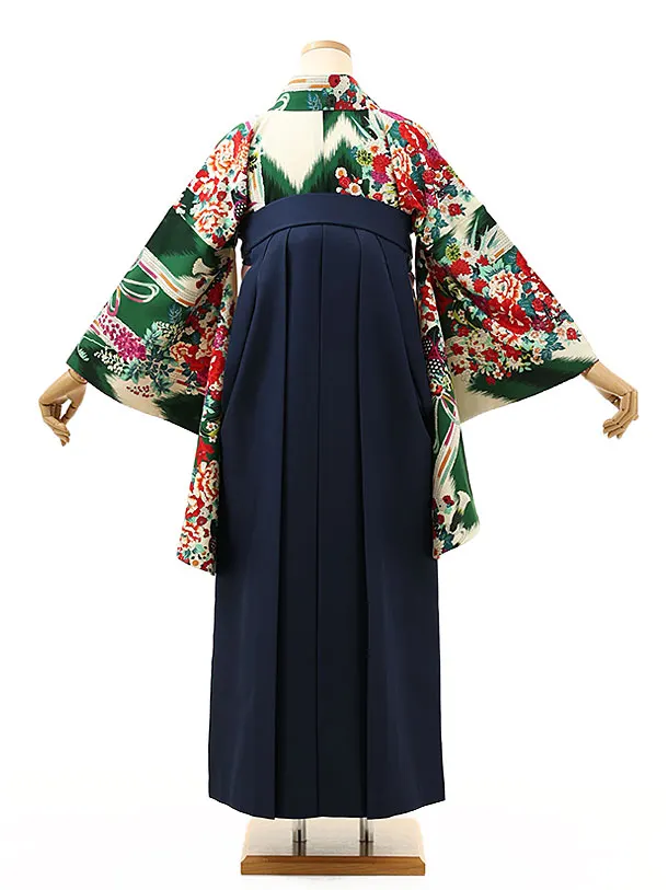 卒業式袴レンタル1604グリーン矢羽根薬玉x紺