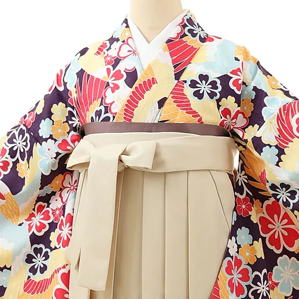 卒業式袴レンタル1610 パープル桜 鶴×アイボリー