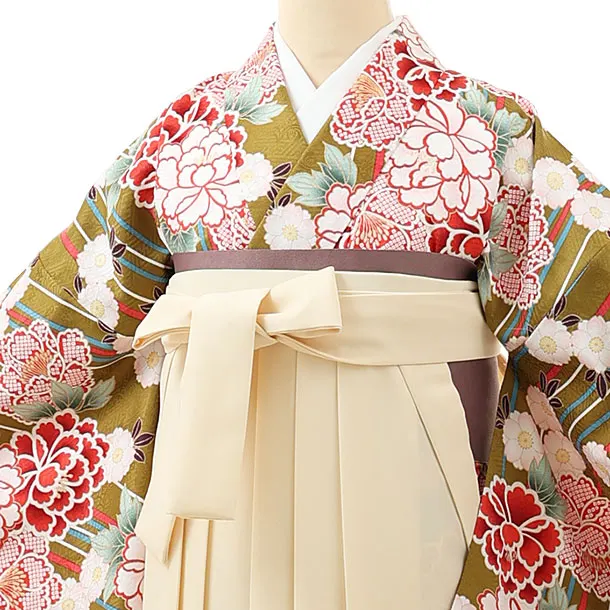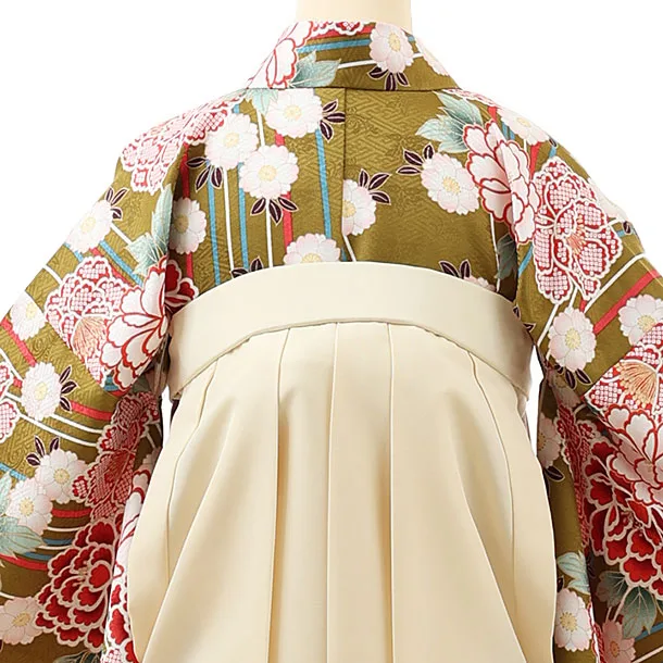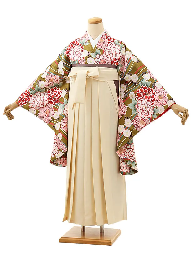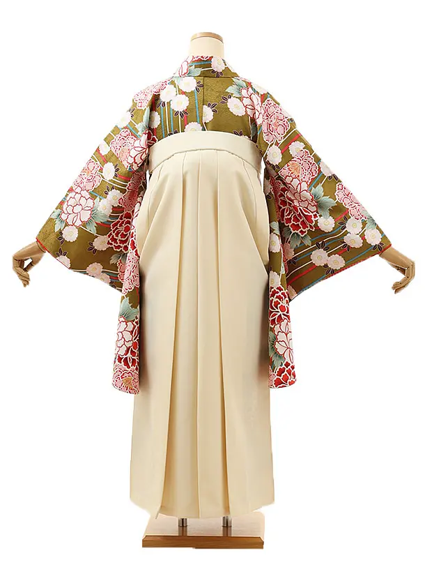 卒業式袴レンタル1614 抹茶色牡丹×クリーム