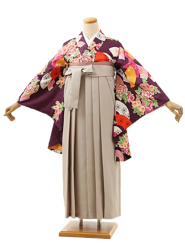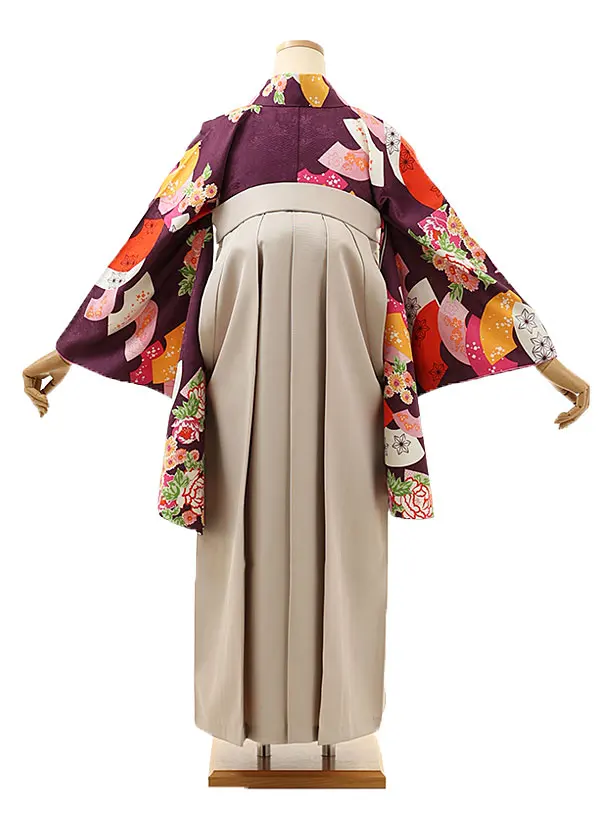 卒業式袴レンタル1616 パープル扇に花×グレージュ