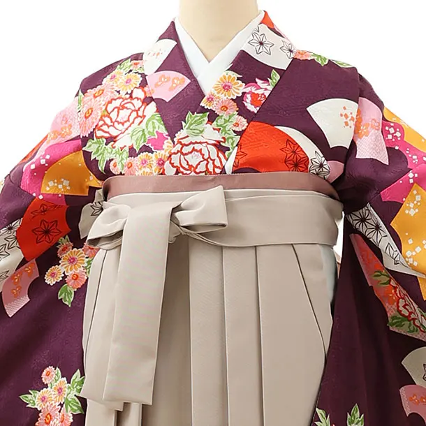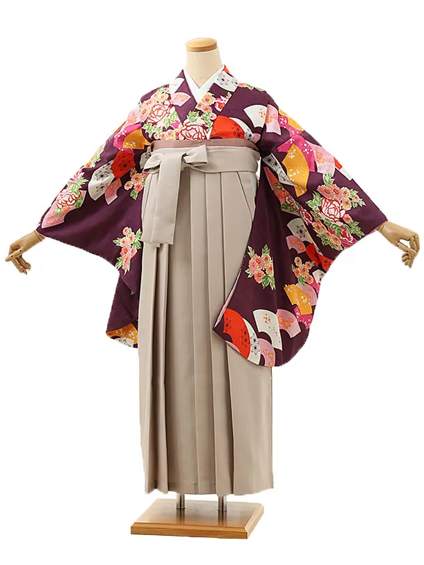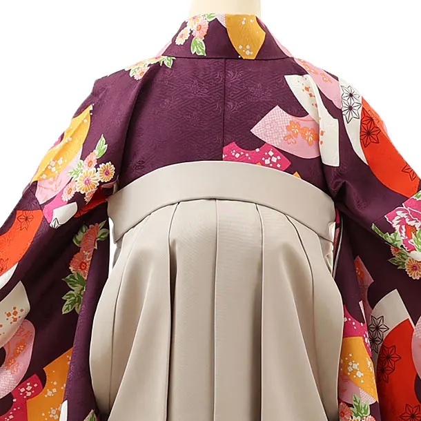 卒業式袴レンタル1617 パープル扇に花×グレージュ