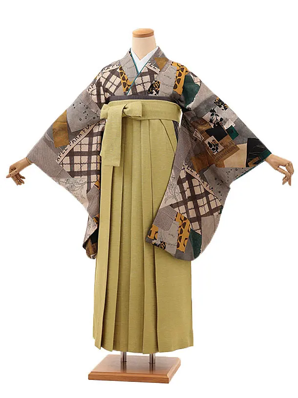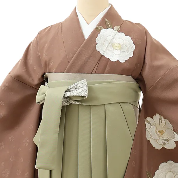 卒業袴レンタル1620 モカブラウン刺繍花×グリーン