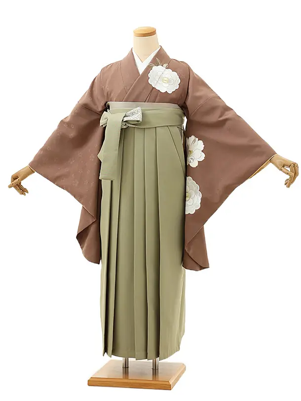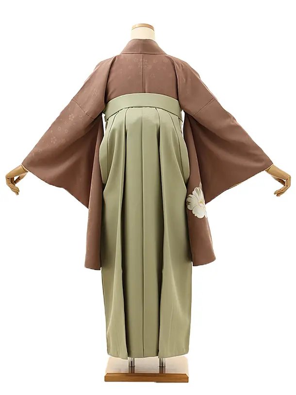 卒業袴レンタル1621 モカブラウン刺繍花×グリーン