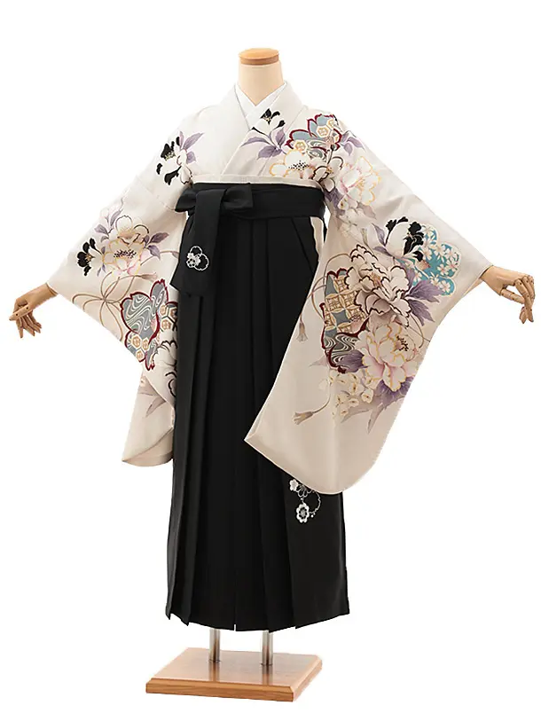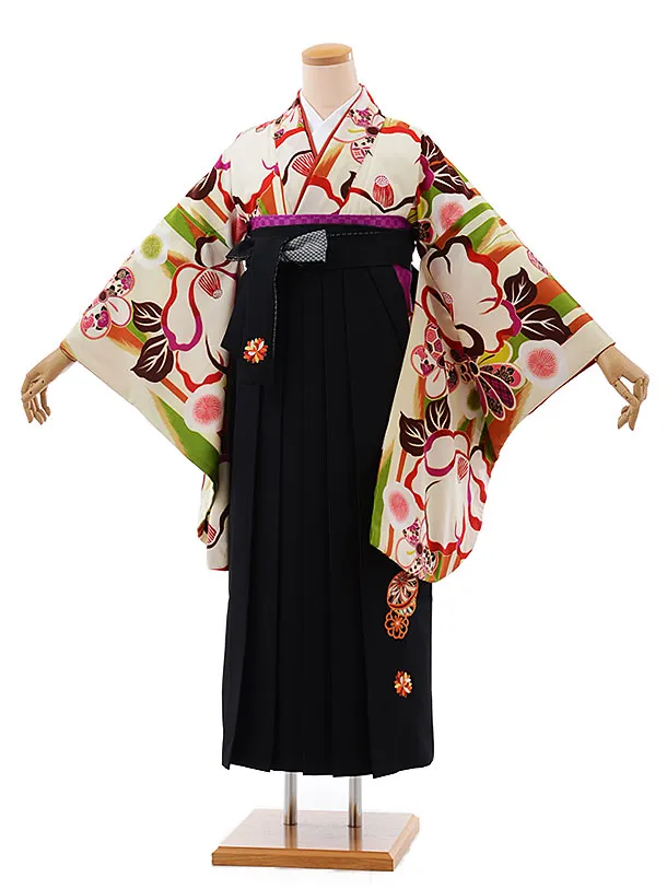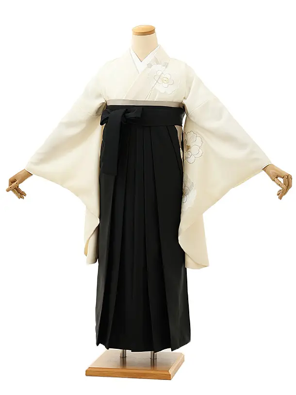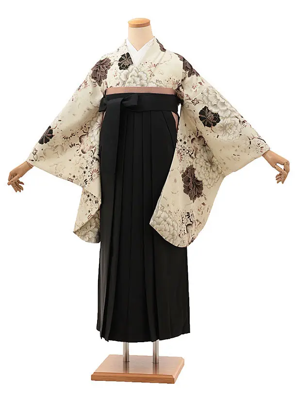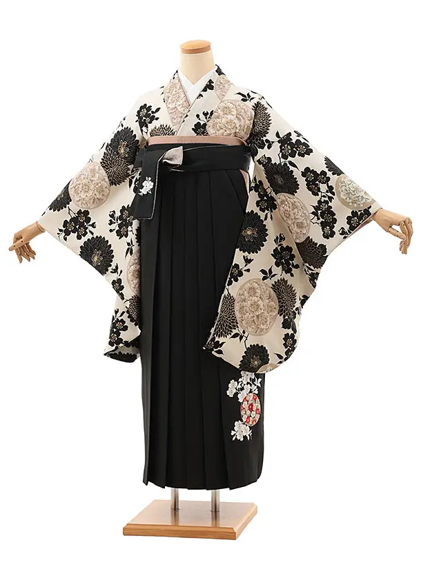 卒業式袴レンタル1622 クリーム刺繍花×黒
