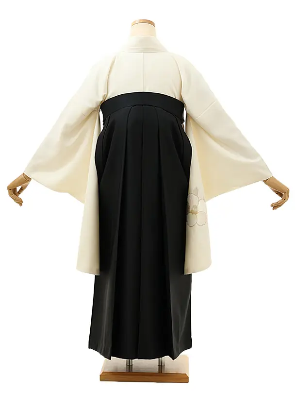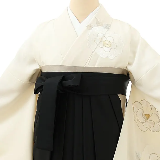 卒業式袴レンタル1623 クリーム刺繍花×黒