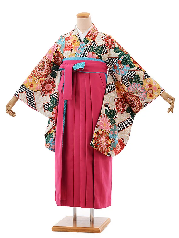 卒業式袴レンタル1624 薄ベージュ小花×ペールピンク
