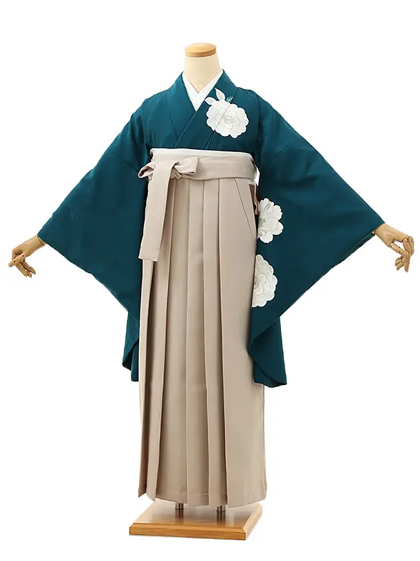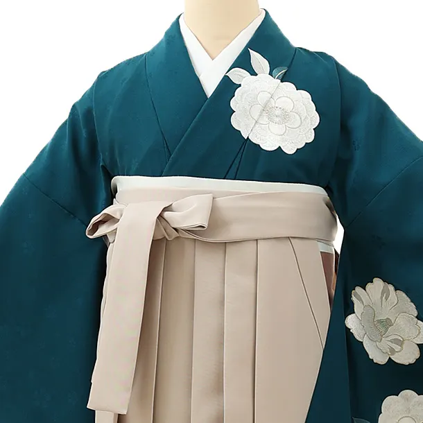 卒業袴レンタル1630 グリーン刺繍花×ベージュ
