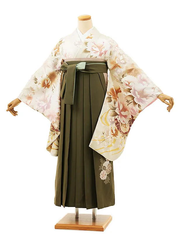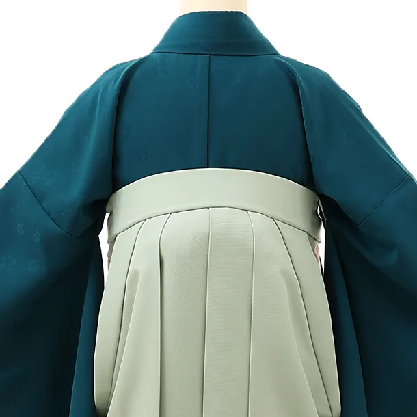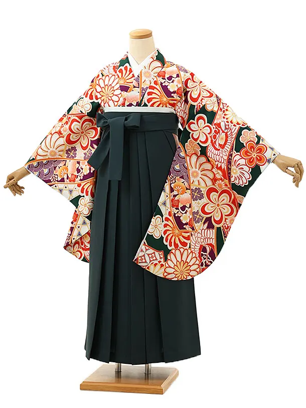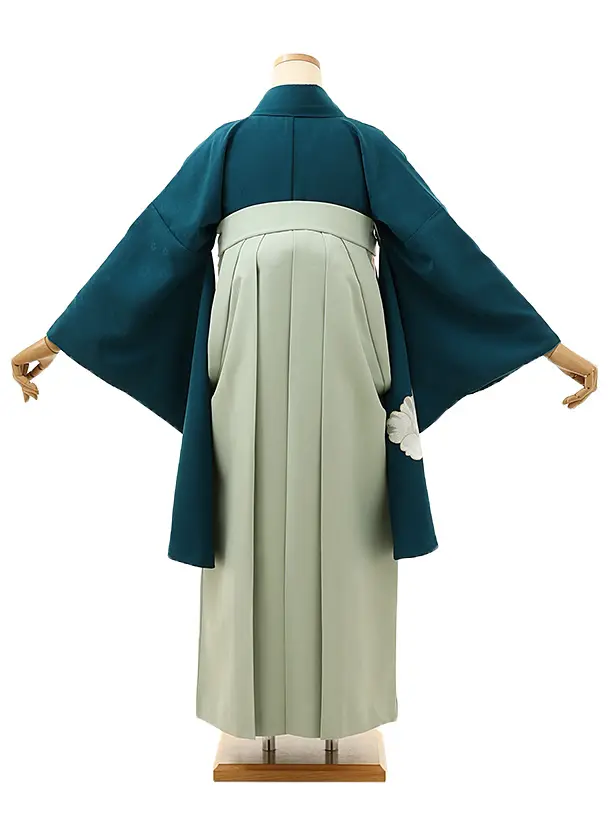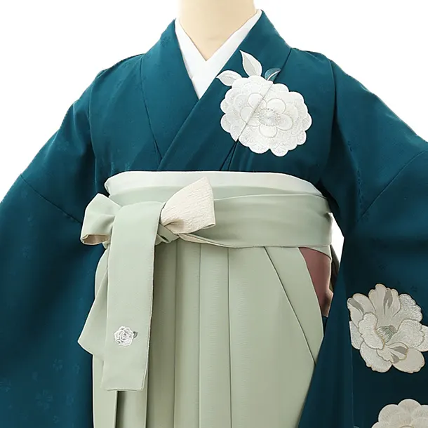 卒業袴レンタル1632 グリーン刺繍花×グリーン