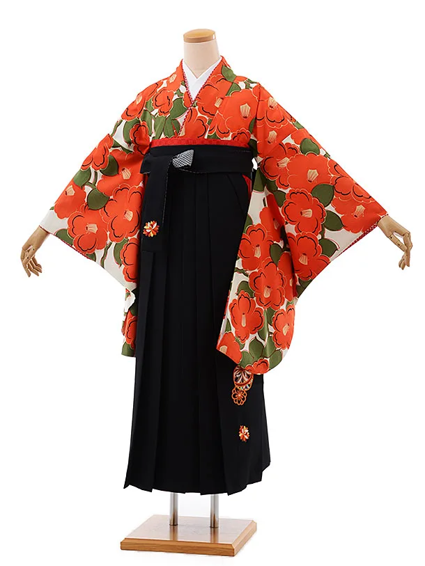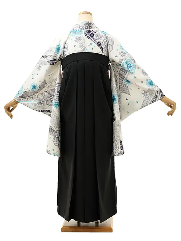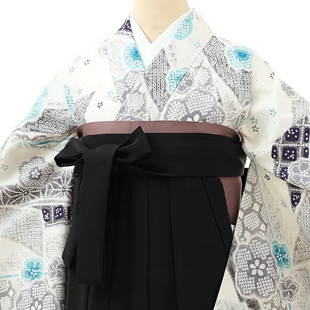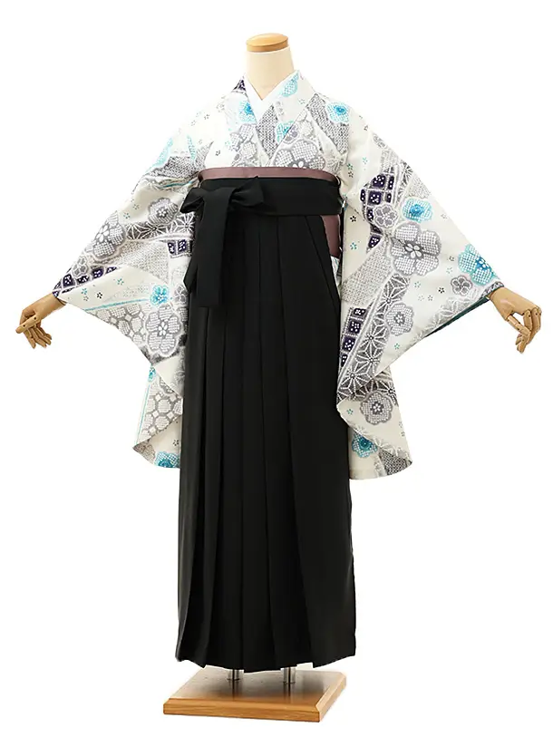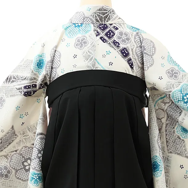 卒業袴レンタル1633 白地 熨斗に桜×黒