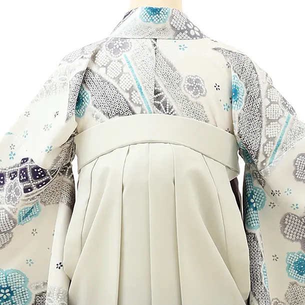 卒業式袴レンタル1634 白地 熨斗に桜×グレーぼかし