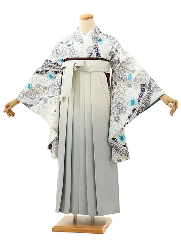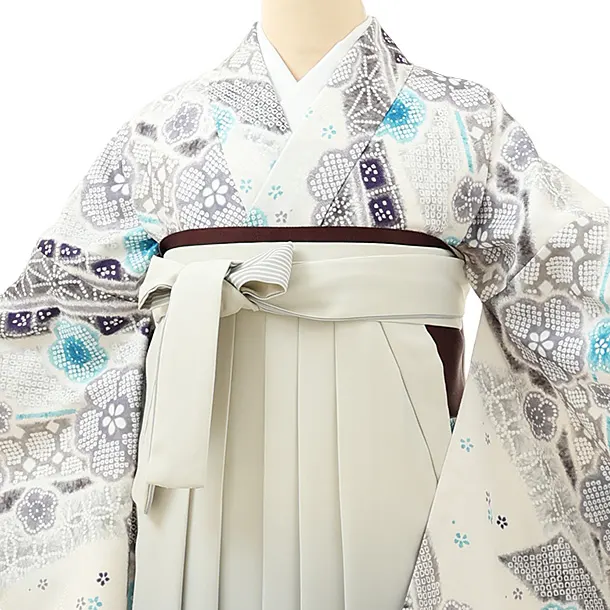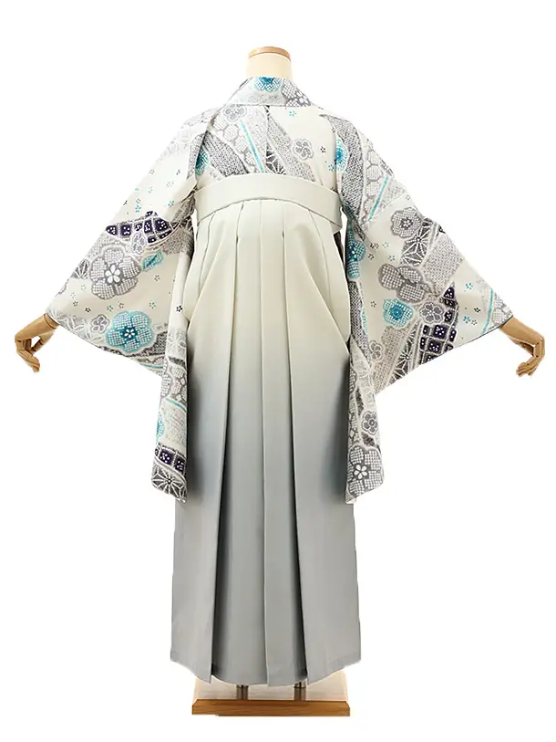 卒業式袴レンタル1635 白地 熨斗に桜×グレーぼかし