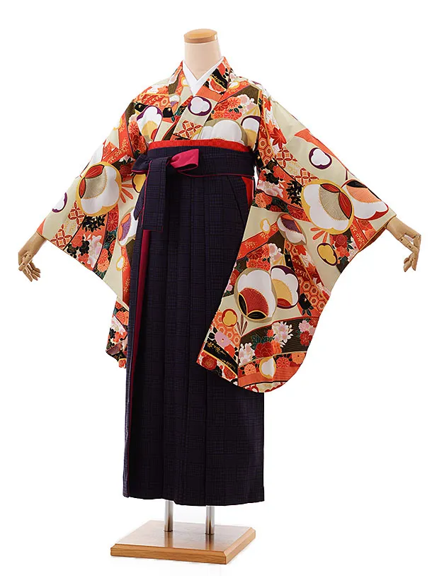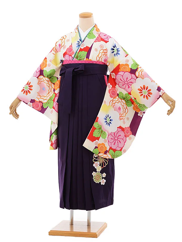 卒業式袴レンタル1636 ベージュ小花×ラベンダー