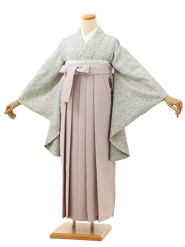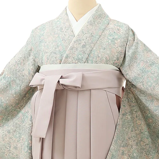 卒業式袴レンタル1639 ペールグリーン花唐草×ラベンダー