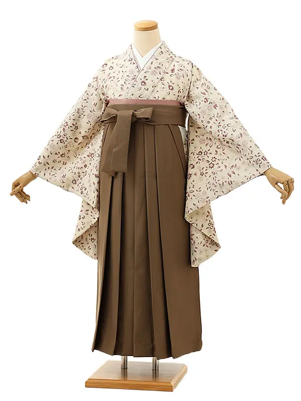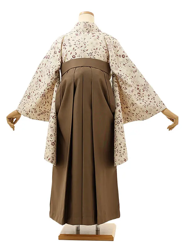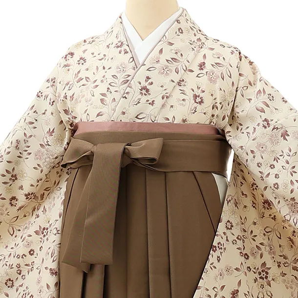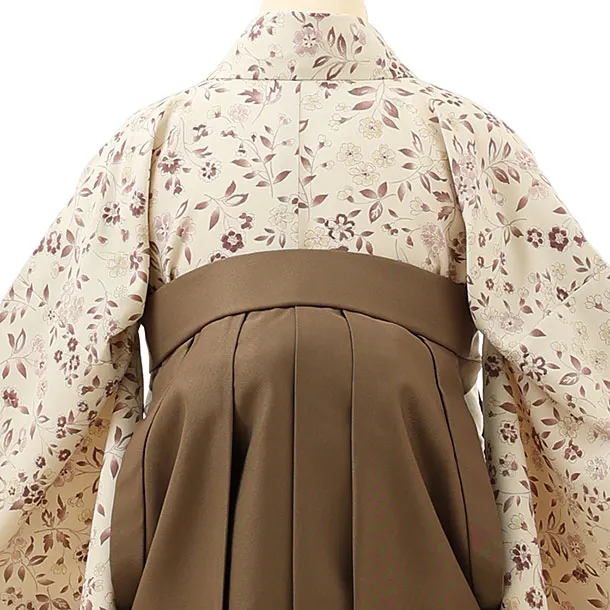 卒業式袴レンタル1641 ベージュ花唐草×ブラウン
