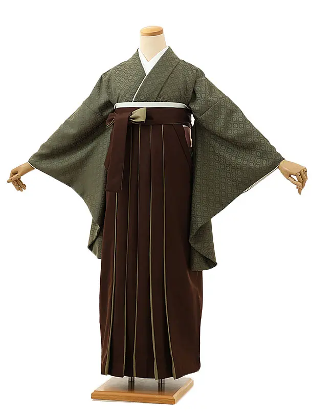 卒業袴レンタル1645 モスグリーン×ブラウングリーン