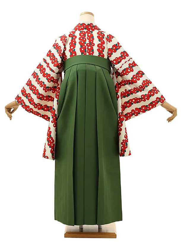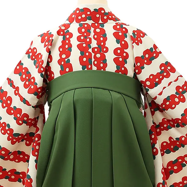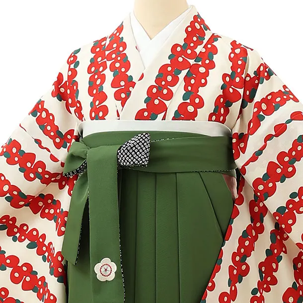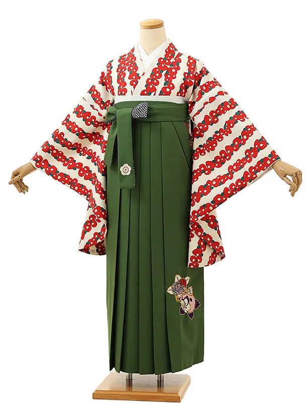 卒業式袴レンタル1657 アイボリー赤椿×グリーン