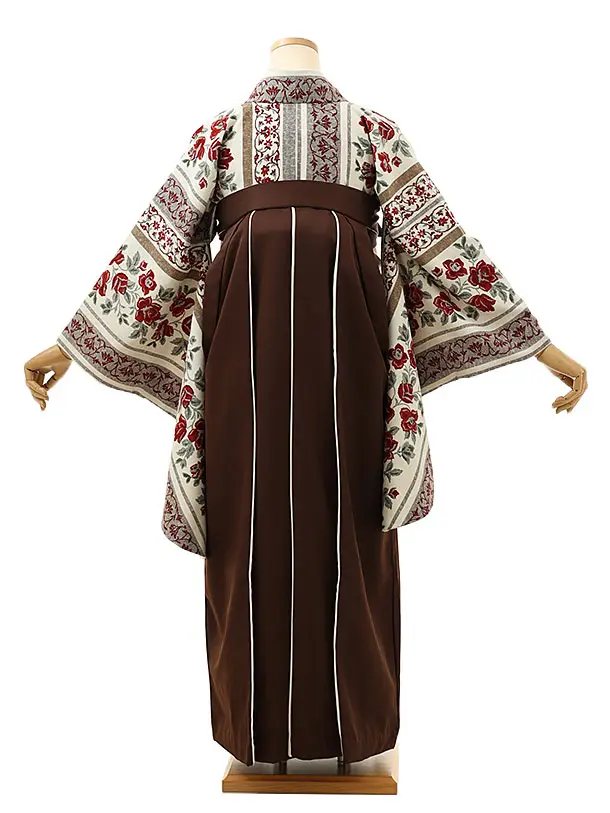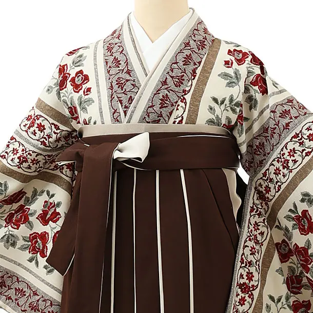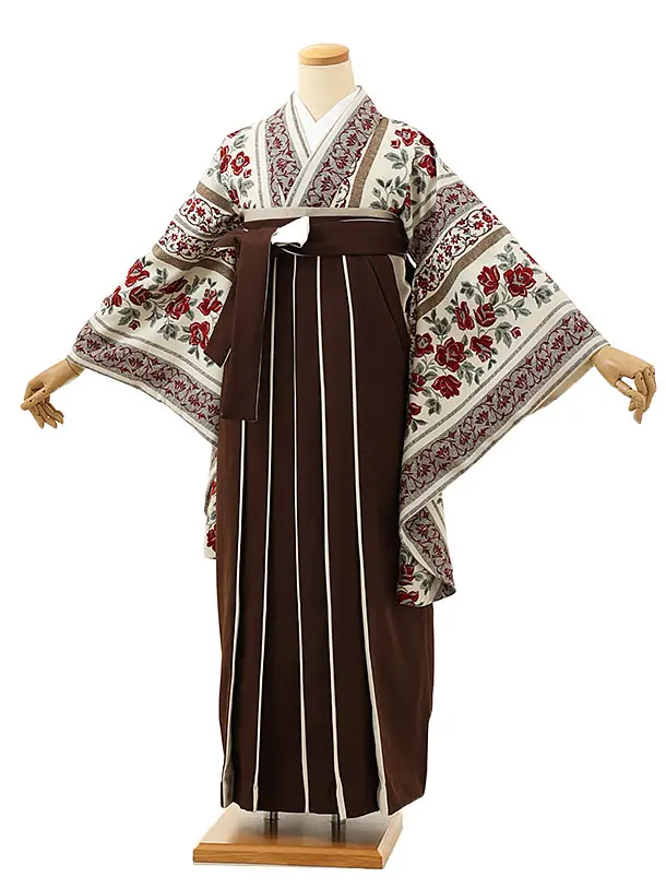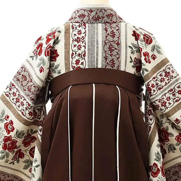 卒業式袴レンタル1658 ベージュゴブラン柄×ブラウンアイボリー