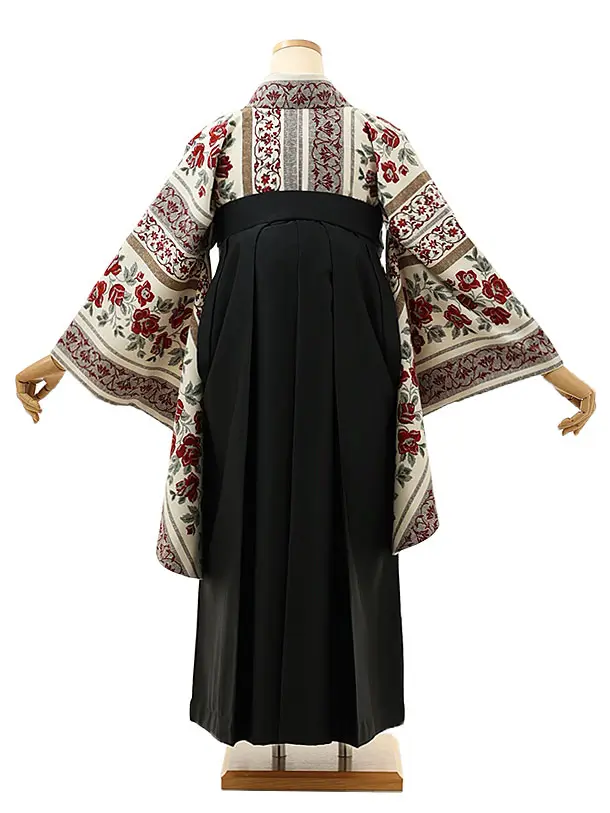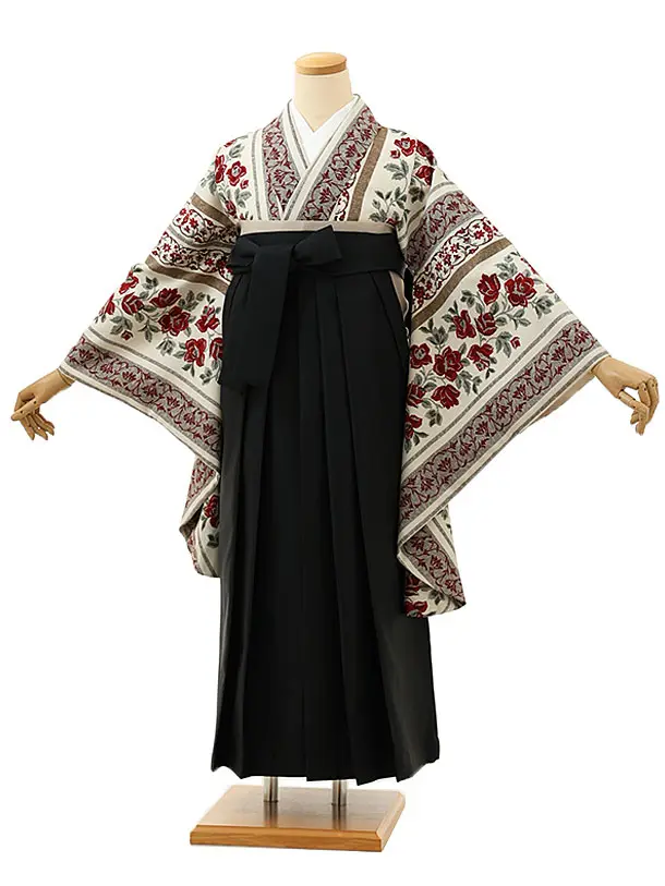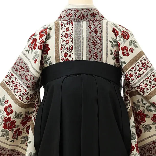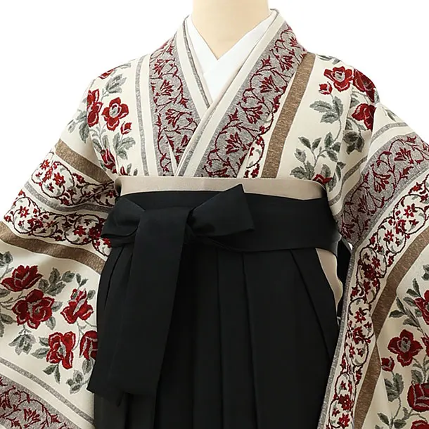 卒業式袴レンタル1660 ベージュゴブラン柄×黒