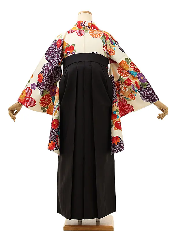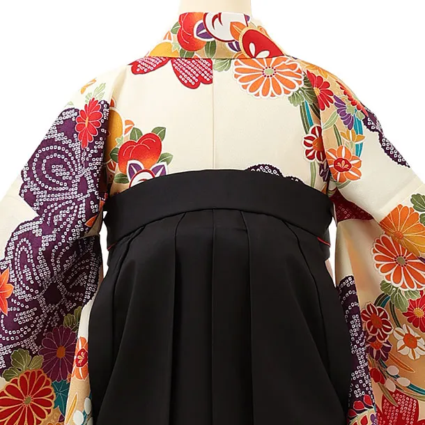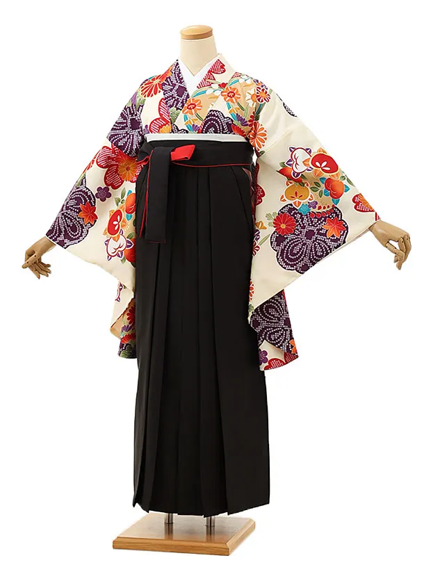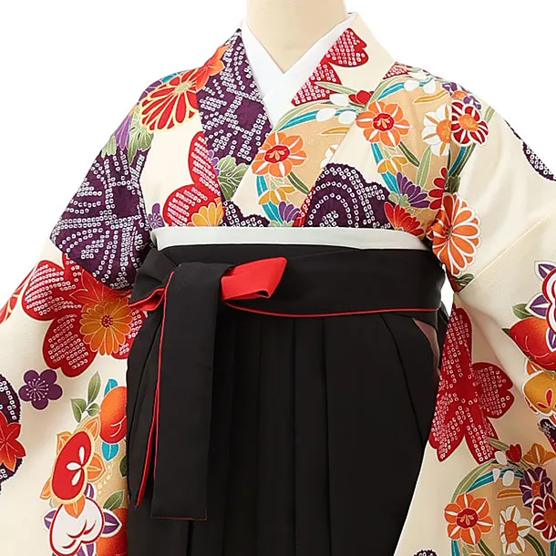 卒業式袴レンタル1661 クリーム地菊橘×黒赤