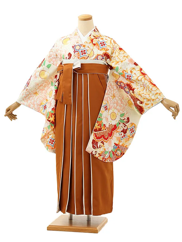 卒業式袴レンタル1662 クリーム地菊橘×金茶アイボリー