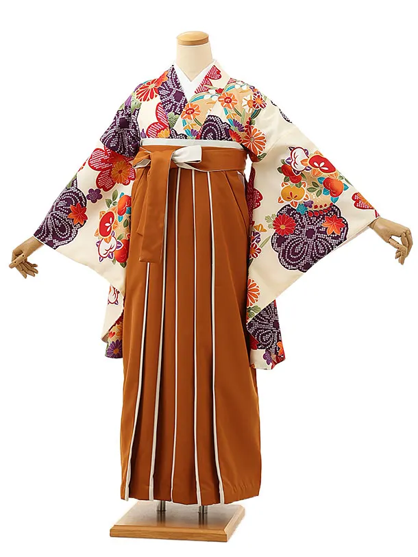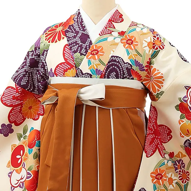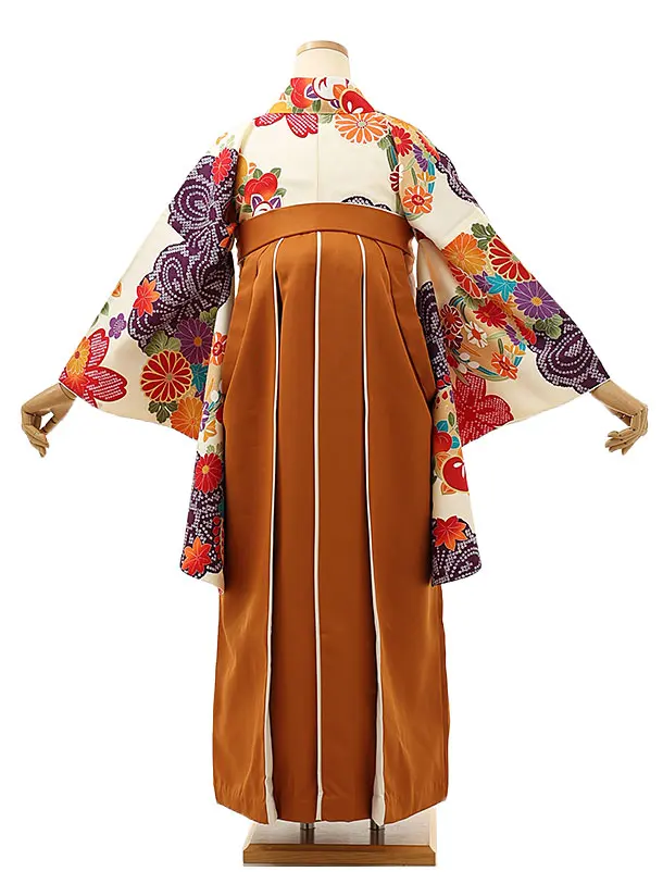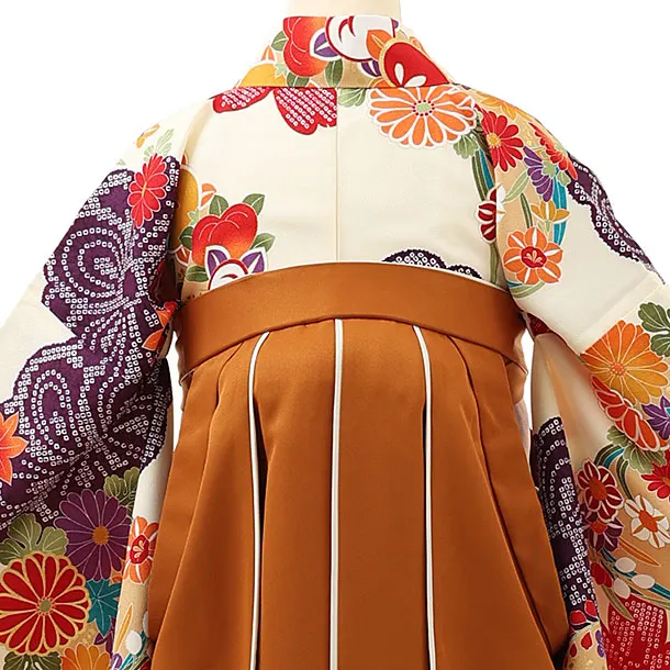 卒業式袴レンタル1663 クリーム地菊橘×金茶アイボリー