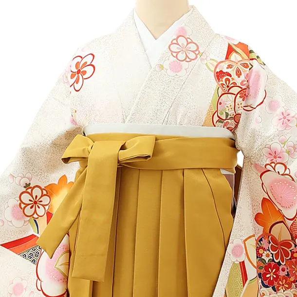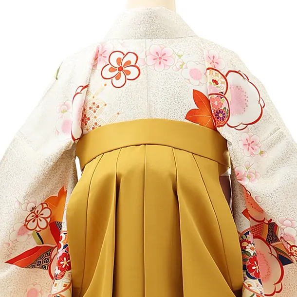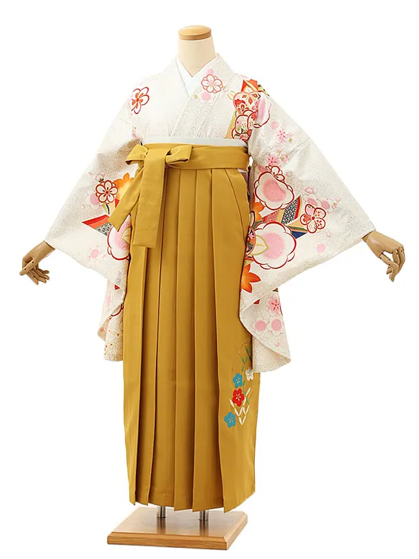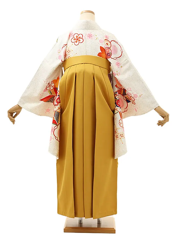卒業式袴レンタル1666 白地金彩梅橘×からし