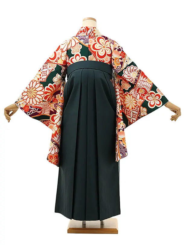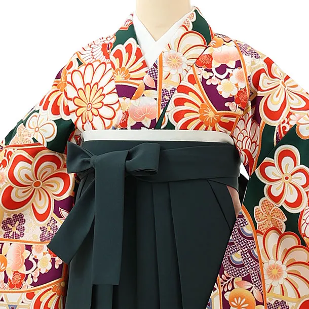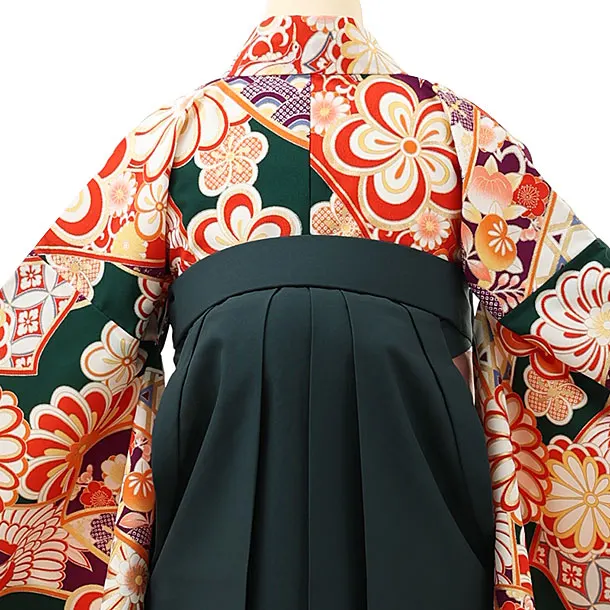 卒業式袴レンタル1667 グリーンねじり梅菊×グリーン