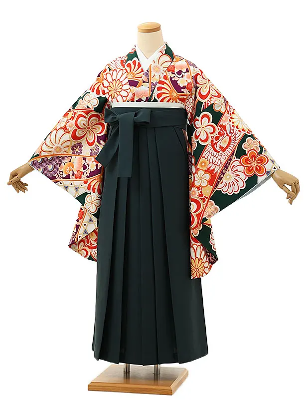 卒業式袴レンタル1668 グリーンねじり梅菊×グリーン