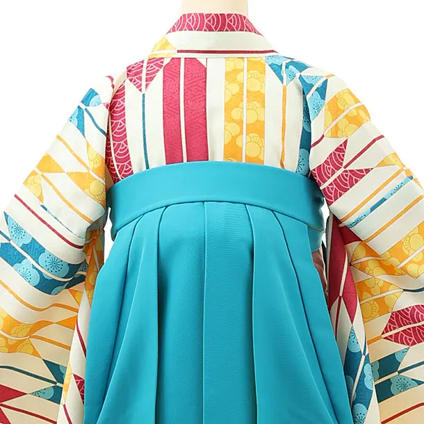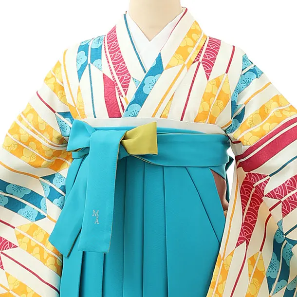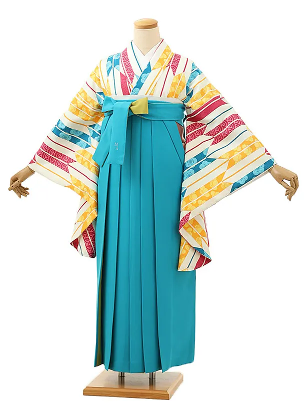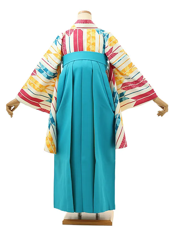 卒業式袴レンタル1673 クリーム地矢柄×ブルー