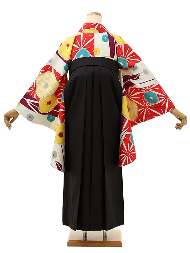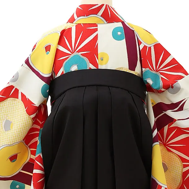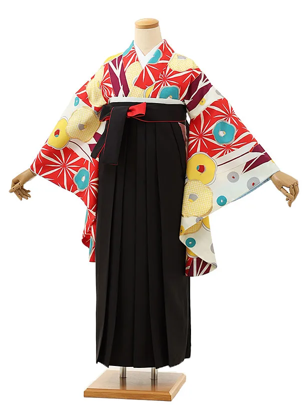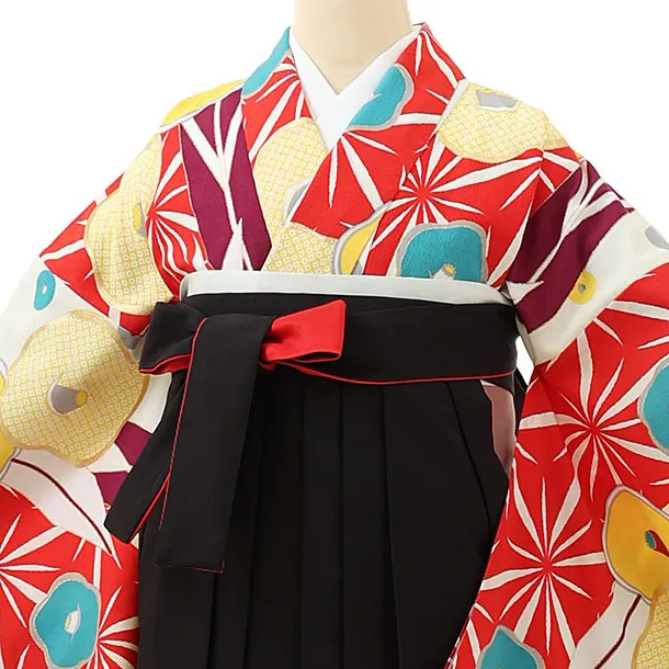 卒業式袴レンタル1681 赤白矢柄根椿×黒赤