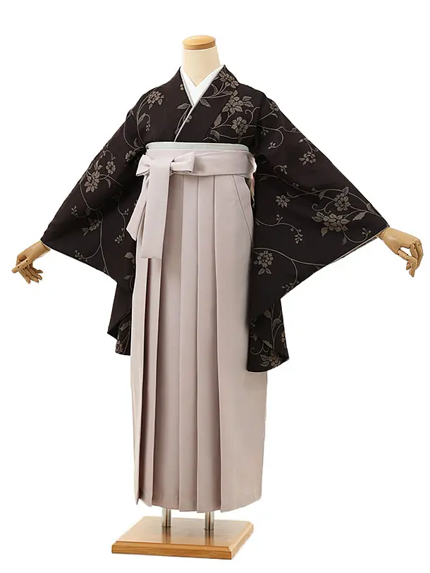 卒業袴レンタル1683 こげ茶枝花×うすラベンダー