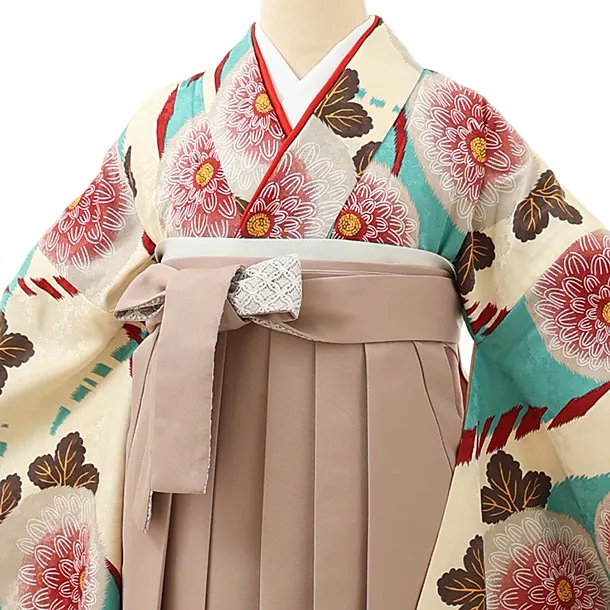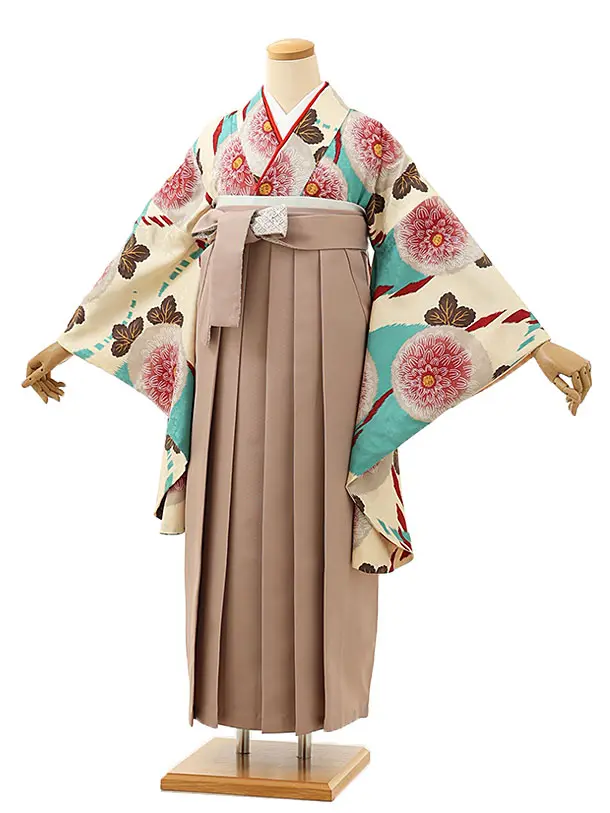 卒業式袴レンタル1692 クリームブルー菊×ペールピンク