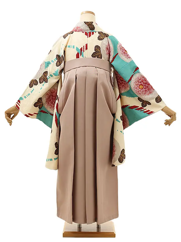 卒業式袴レンタル1693 クリームブルー菊×ペールピンク