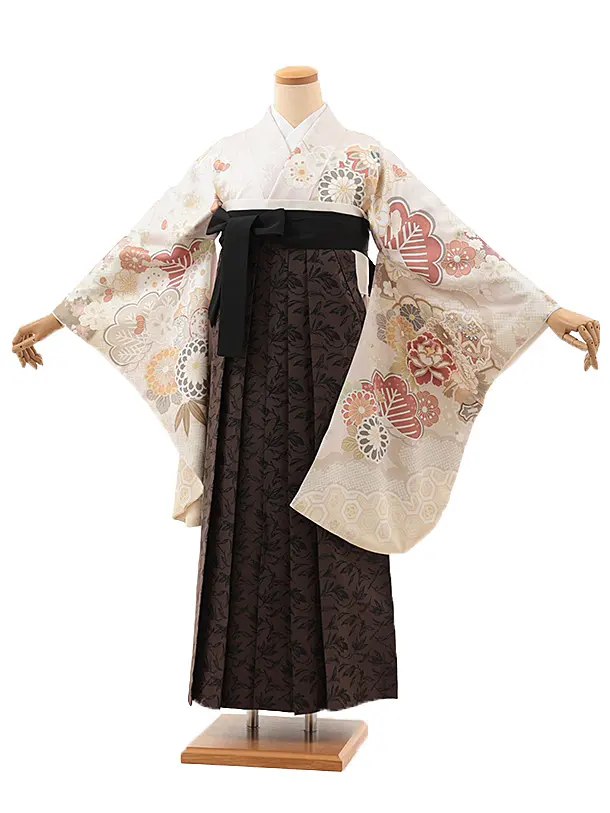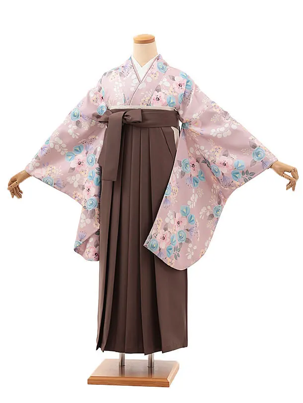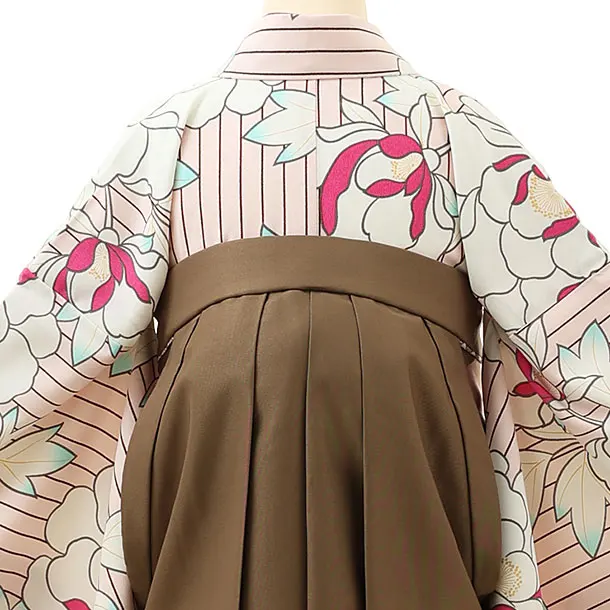 卒業式袴レンタル1697 ピンクストライプ牡丹×茶