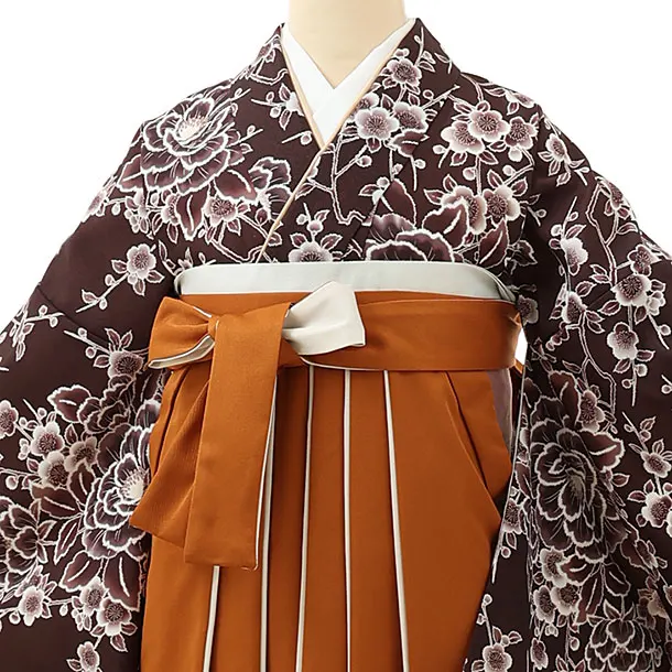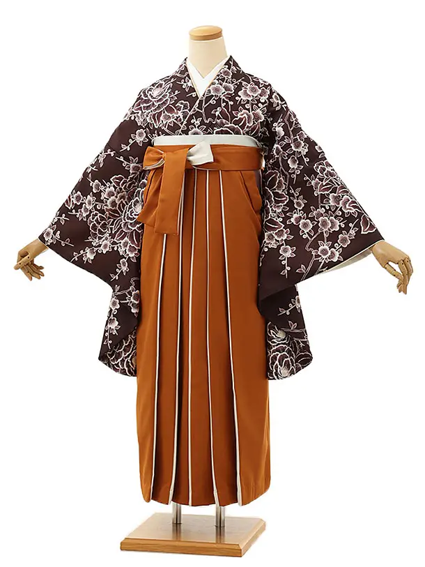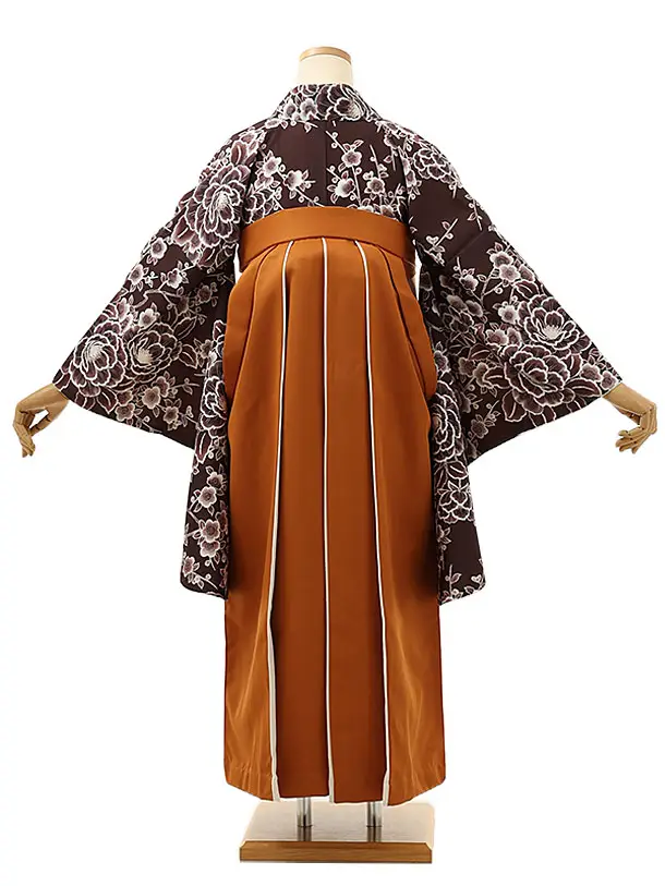 卒業式袴レンタル1700 濃茶梅牡丹×金茶アイボリー