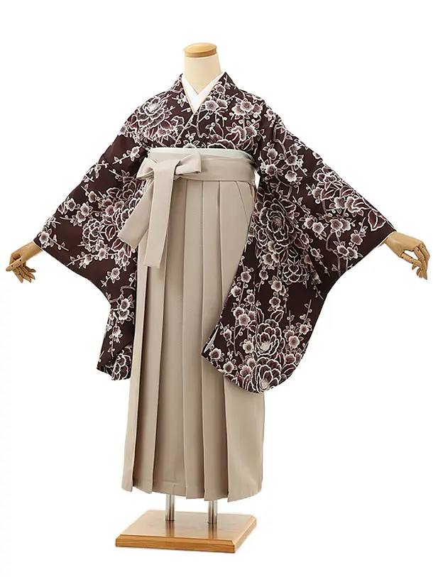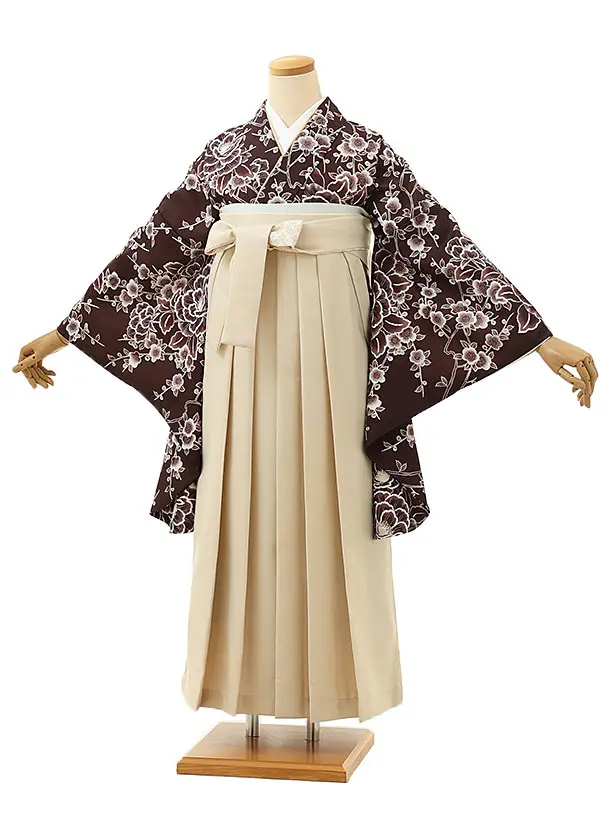 卒業式袴レンタル1703 濃茶梅牡丹×アイボリー