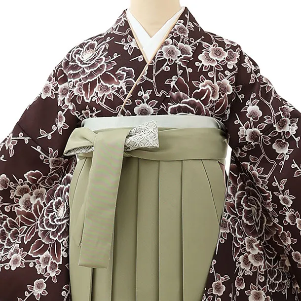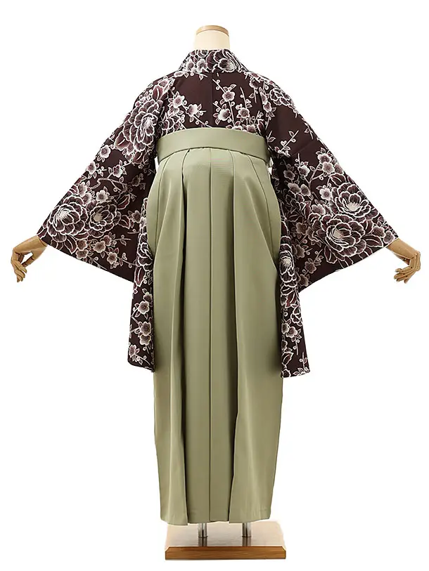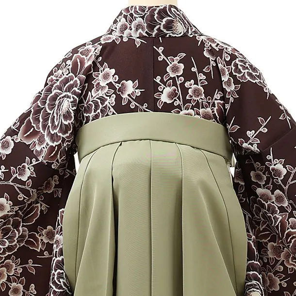 卒業式袴レンタル1706 濃茶梅牡丹×ペールグリーン