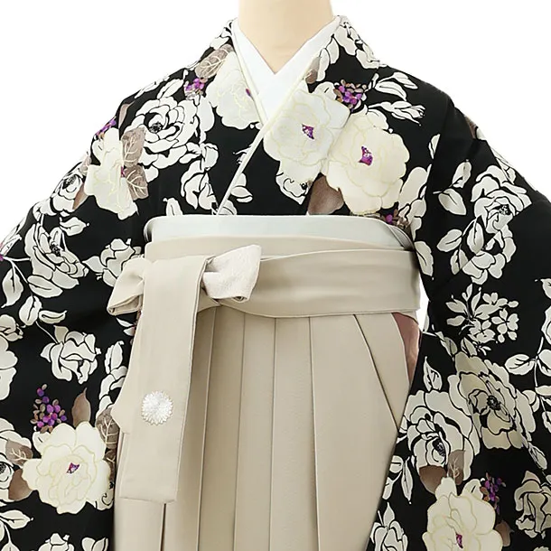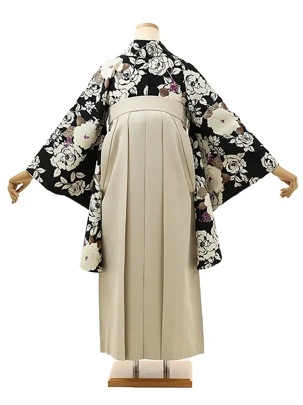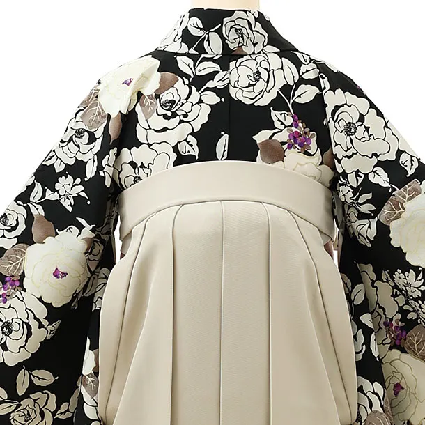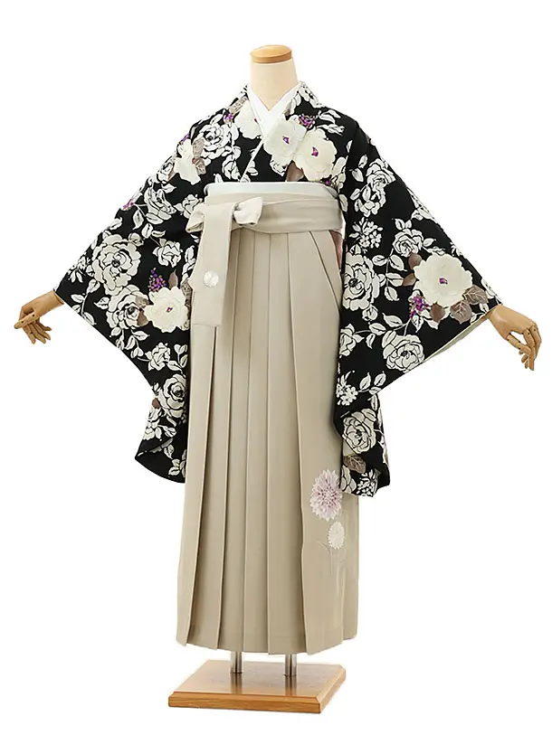 卒業式袴レンタル1707 黒地バラ×ベージュ
