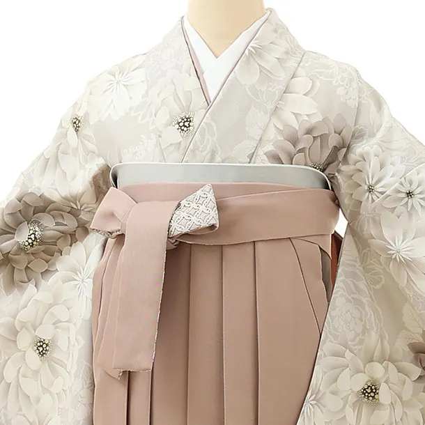 卒業式袴レンタル1713 ベージュ菊×ペールピンク