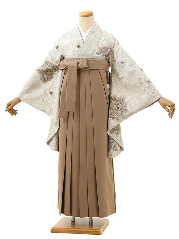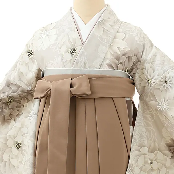 卒業式袴レンタル1715 ベージュ菊×ピンクベージュ
