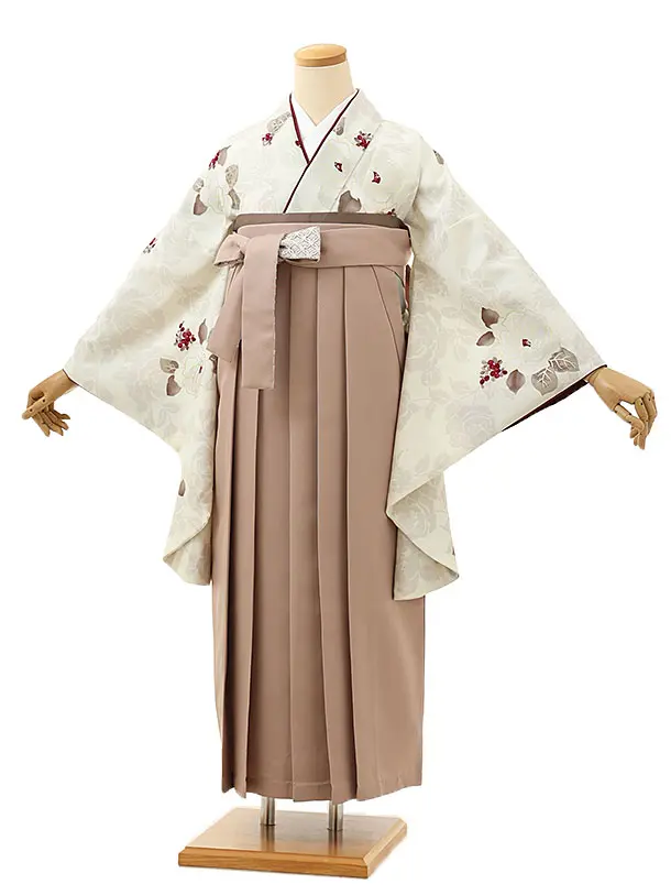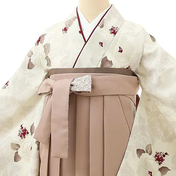 卒業式袴レンタル1716 クリーム地ベージュバラ×ペールピンク