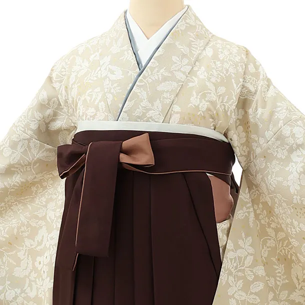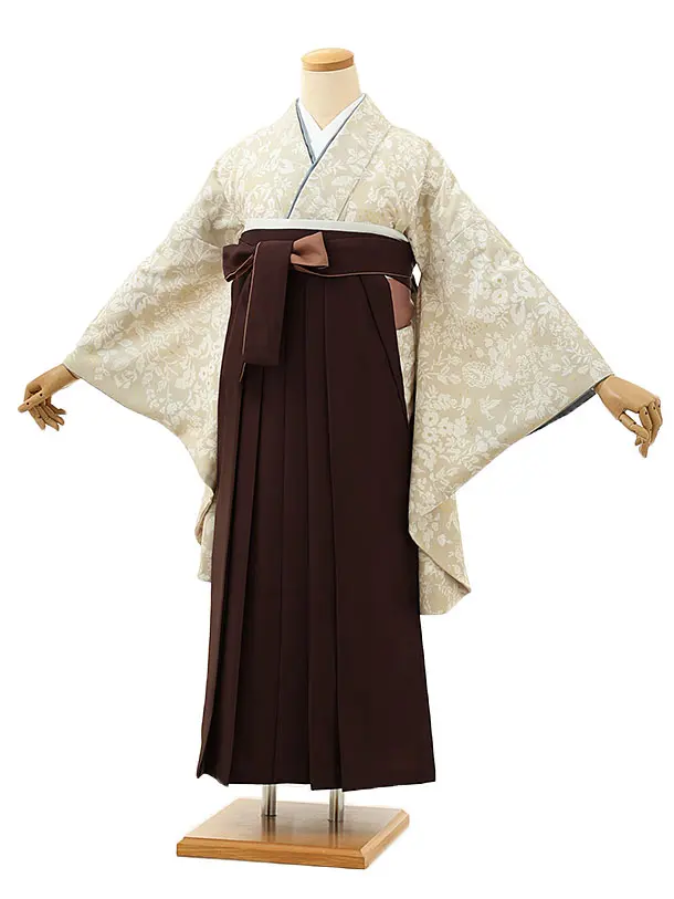 卒業式袴レンタル1719 ベージュ更紗×こげ茶