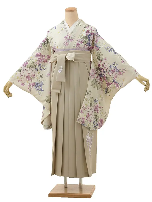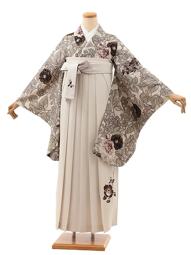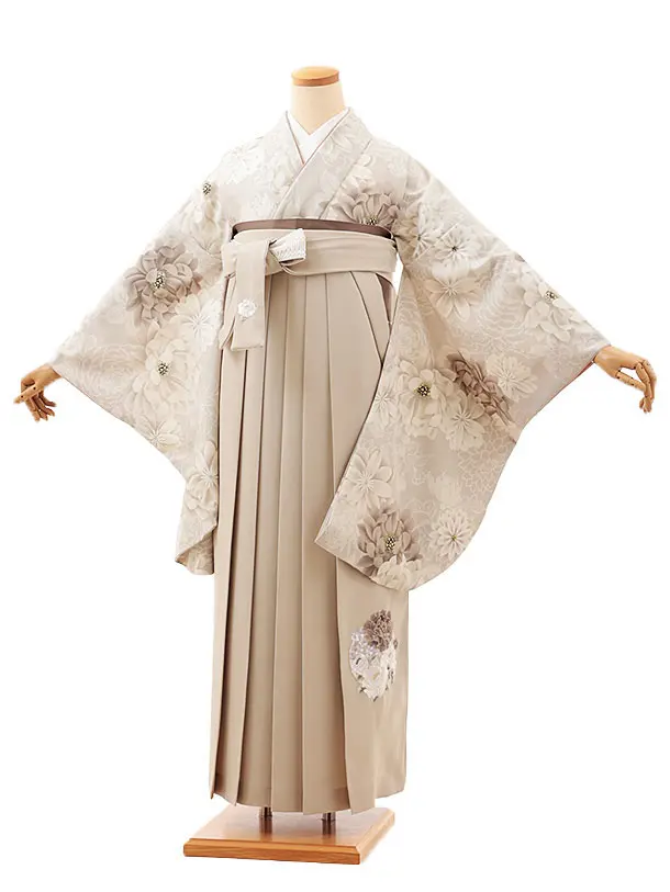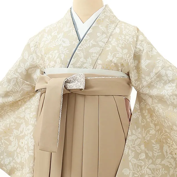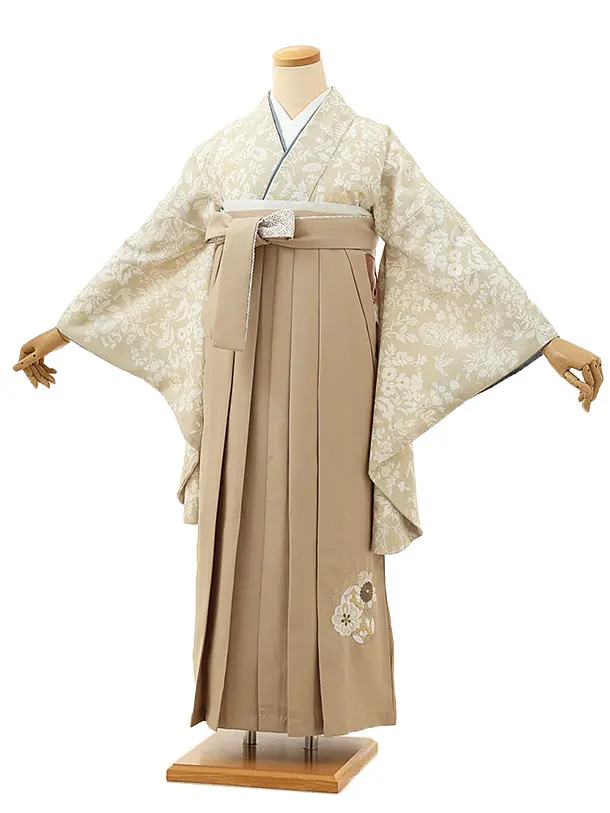 卒業式袴レンタル1720 ベージュ更紗×ベージュ
